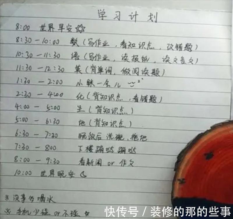 她依旧延续之前的自律行为,合理安排时间,归纳整理错题笔记,制定详细的学习计划,并坚持一项项完成。
